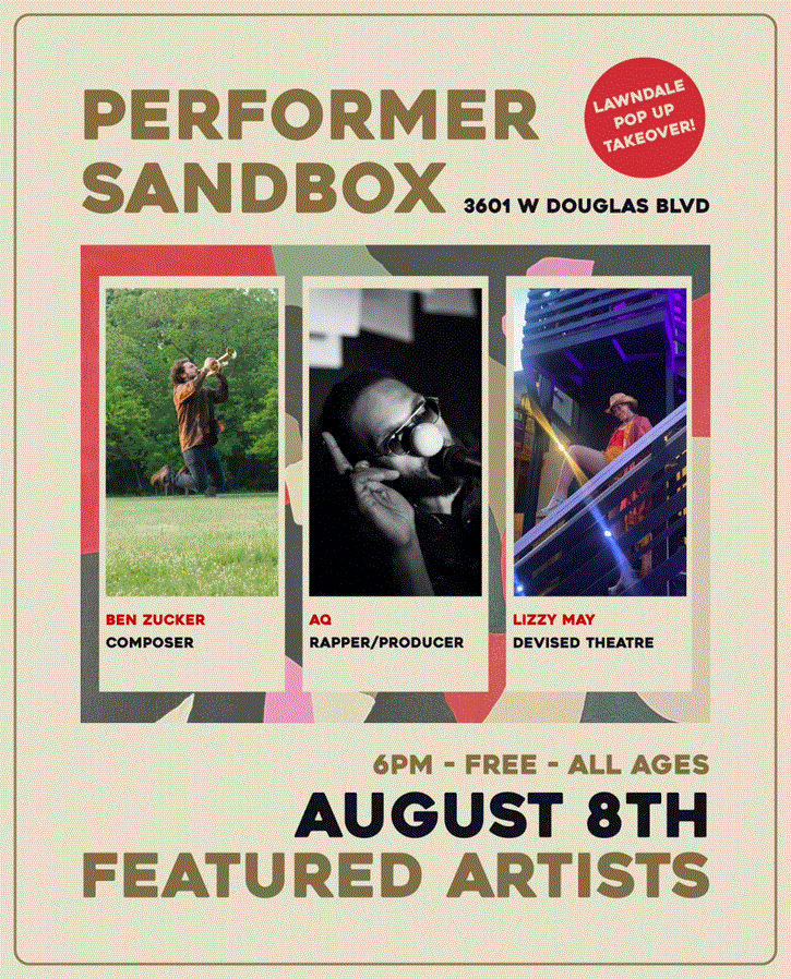 Join Theatre Y as it brings its weekly creative gathering, Friday Night Swerve, to Love Blooms Here Plaza! This week’s activation, Performer Sandbox, features composer Ben Zucker, rapper/producer AQ, and Devised Theatre’s Lizzy May. Pizza provided!